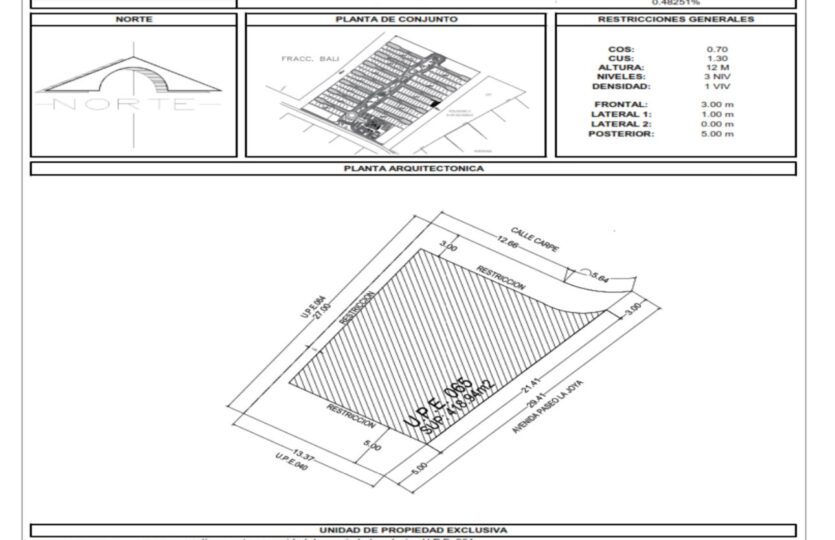 Located in the private Valenia Club Residencial, Lot 65 offers a generous 418.94 m² of residential land in one of Playa del Carmen’s fastest-growing areas. Perfect for building your custom home or securing a long-term investment.